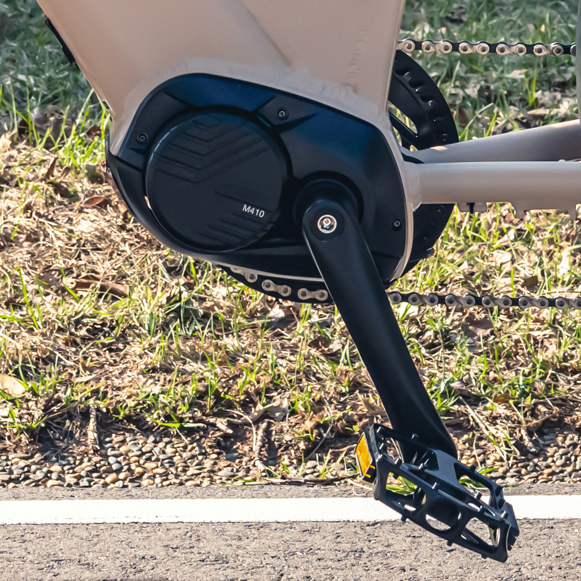 Das Herzstück des E-Bikes ist der 250-W-Mittelmotor BaFang M410, der ein Drehmoment von bis zu 80 Nm liefert. Dieser leistungsstarke Motor bietet fünf Tretunterstützungen, sodass sich Steigungen und lange Strecken problemlos bewältigen lassen und das Fahrgefühl insgesamt verbessert wird.